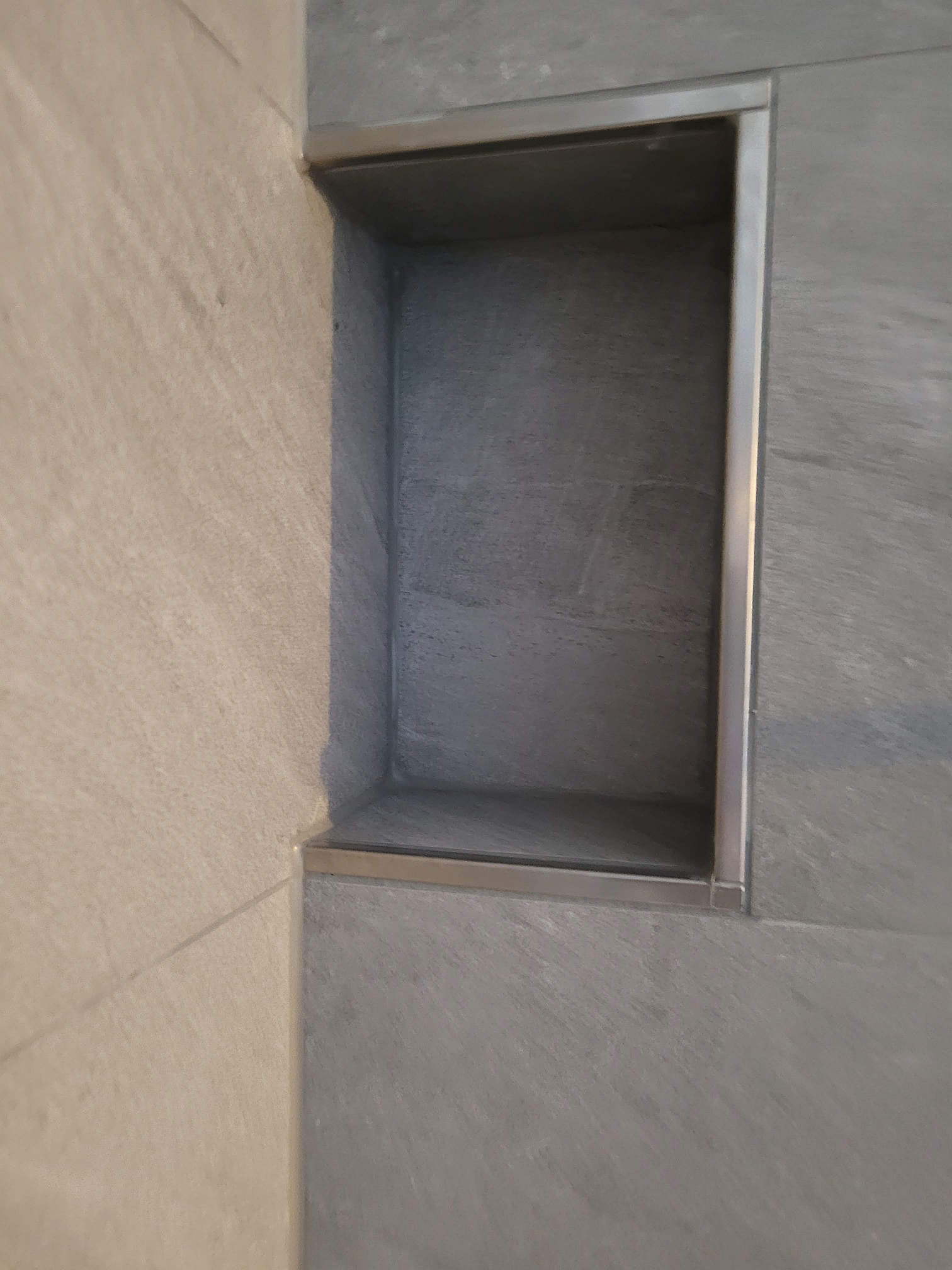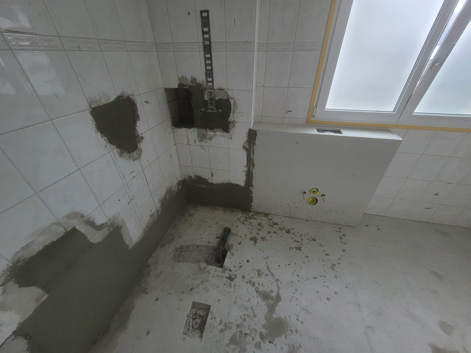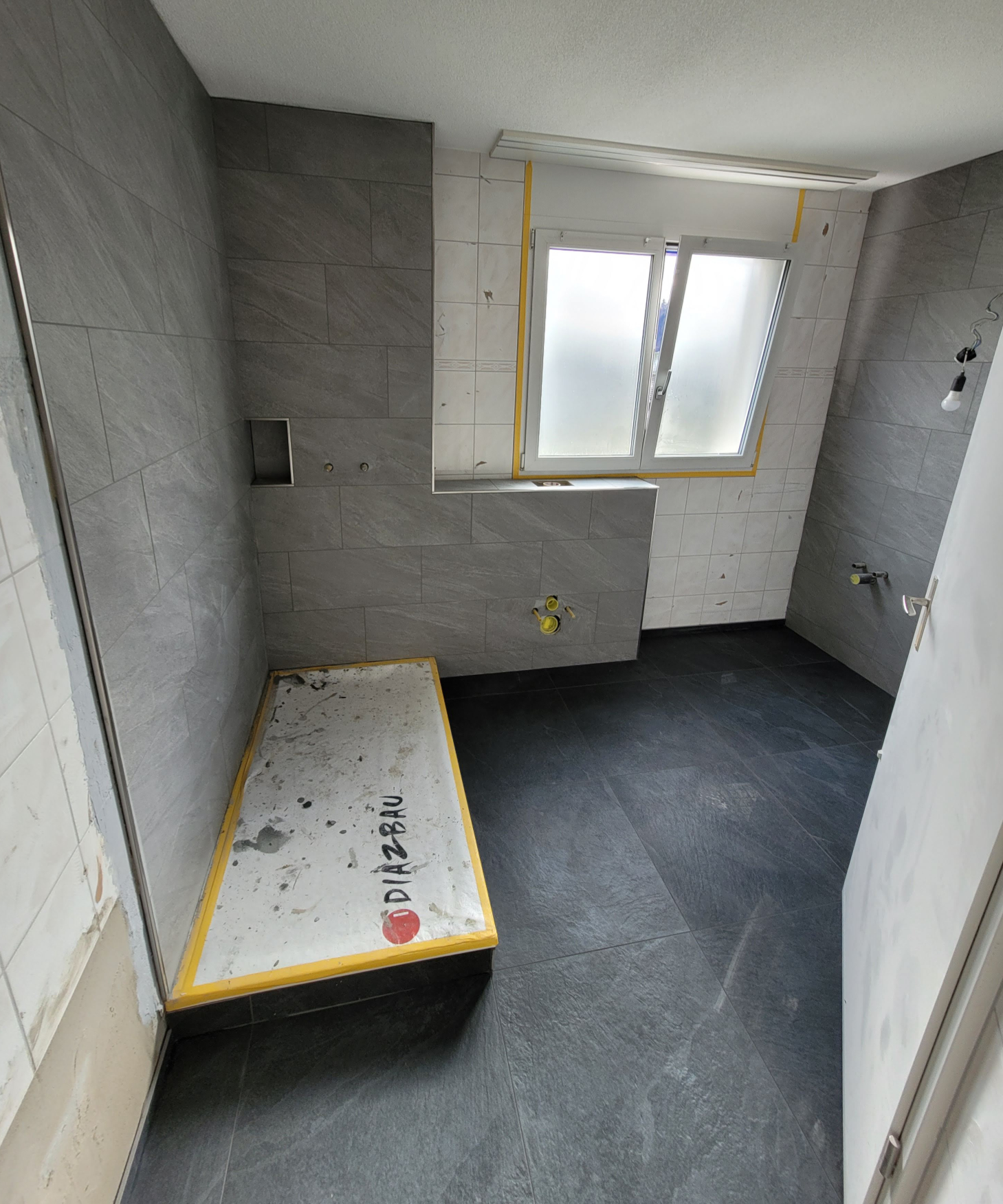 Das Objekt hat eine Dachschräge. Dadurch konnte die Dusche nur in einer Ecke eingebaut werden.…